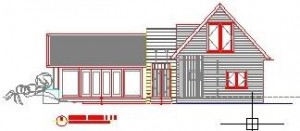 Proposal for large-scale renovation of 1960’s ‘state’ house, Ohakune, adding 100m/2 of new area at ground floor and new first floor level and outdoor living areas.