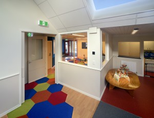 Plunket needed a welcoming, homely facility to host groups, facilitate interaction between new parents and provide clinical services. We undertook this fitout of an existing building for them, reorganising the spaces to better suit their needs and ensuring the building was warm and modern. The relatively neutral fitout is enhanced by bright hexagonal carpet squares emphasising Plunket’s logo colours – and they’ve proven to be a magnet to small children! The space is now bright, colourful and presents a relaxing, enticing space for new mothers to safely allow their babies to play while chatting to others or to take part in classes, playgroups or nurse appointments. A radical change from the old, drafty facility – and playgroups are now at maximum capacity!